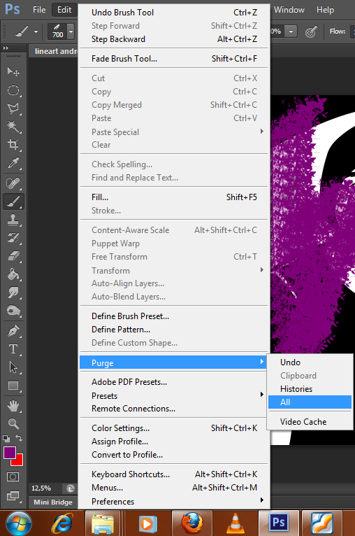 Seluruh History yang tercatat di RAM akan hilang dan kinerja photoshop kembali normal.